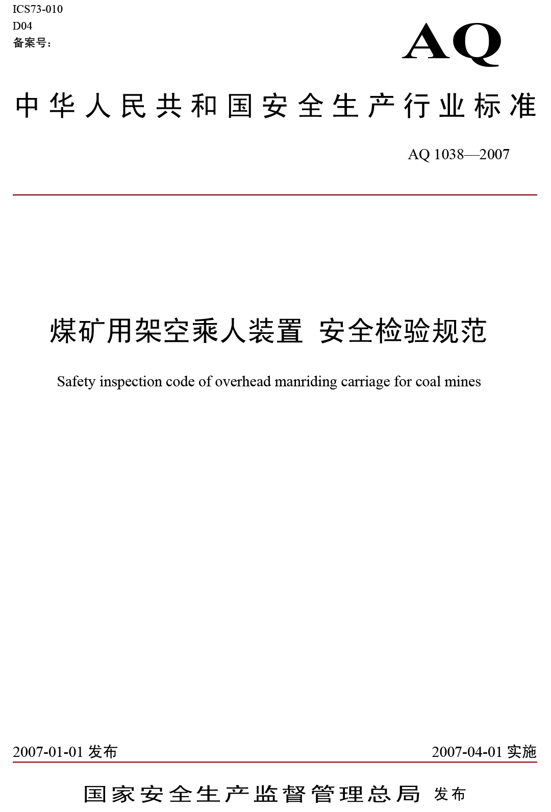xiao12666@163.comAQ1038-2007煤礦用架空乘人裝置安全檢驗(yàn)規(guī)范