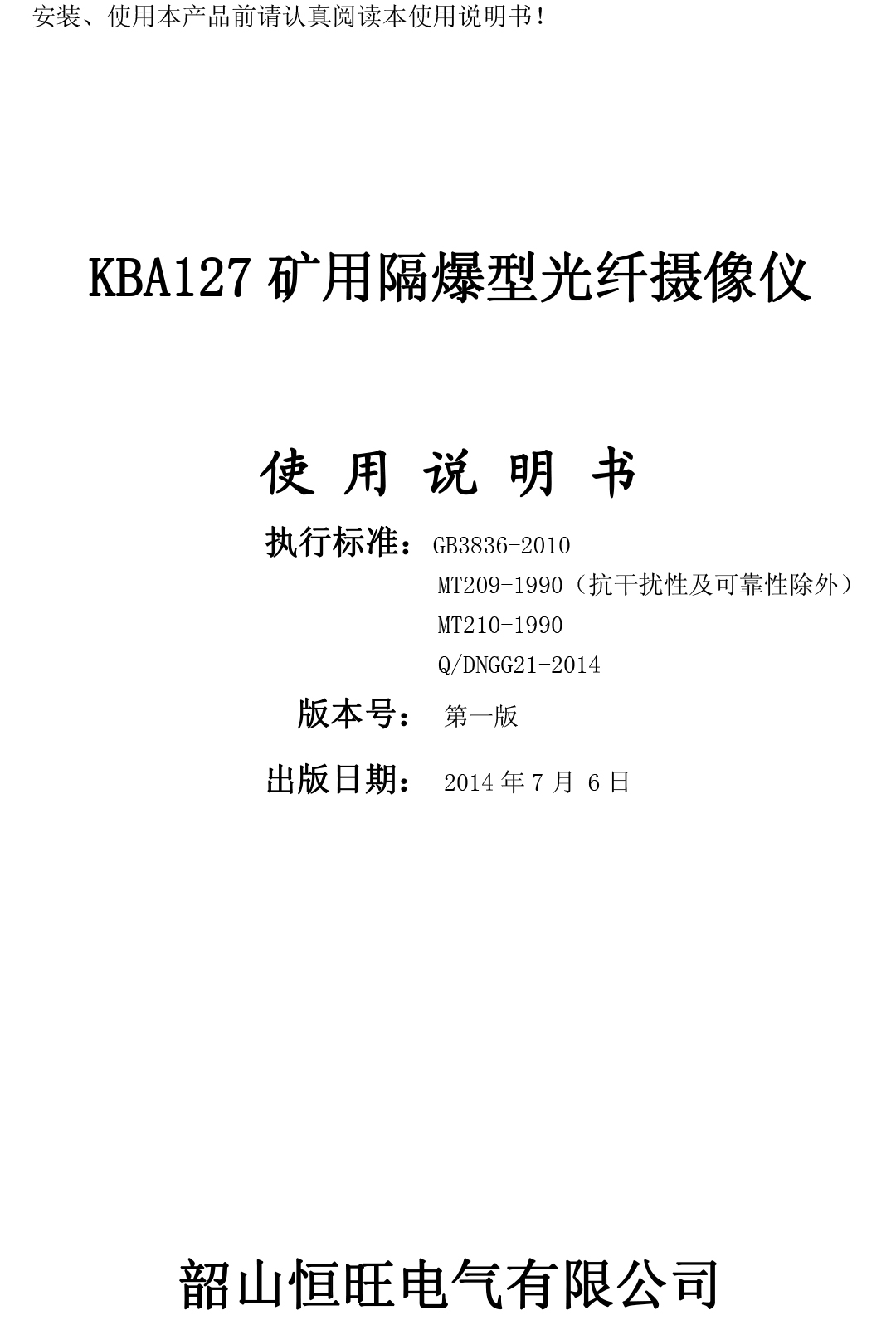 xiao12666@163.comKBA127礦用隔爆型攝像儀說明書