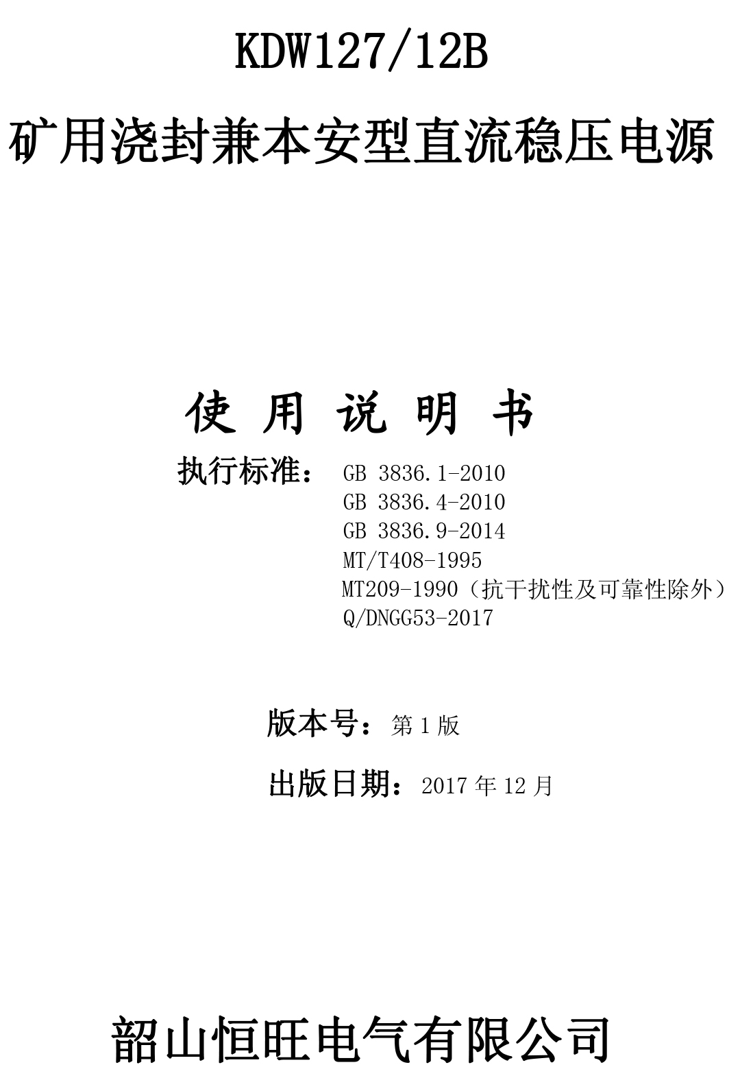 xiao12666@163.comKDW127/12B礦用澆封兼本安型直流穩(wěn)壓電源說(shuō)明書