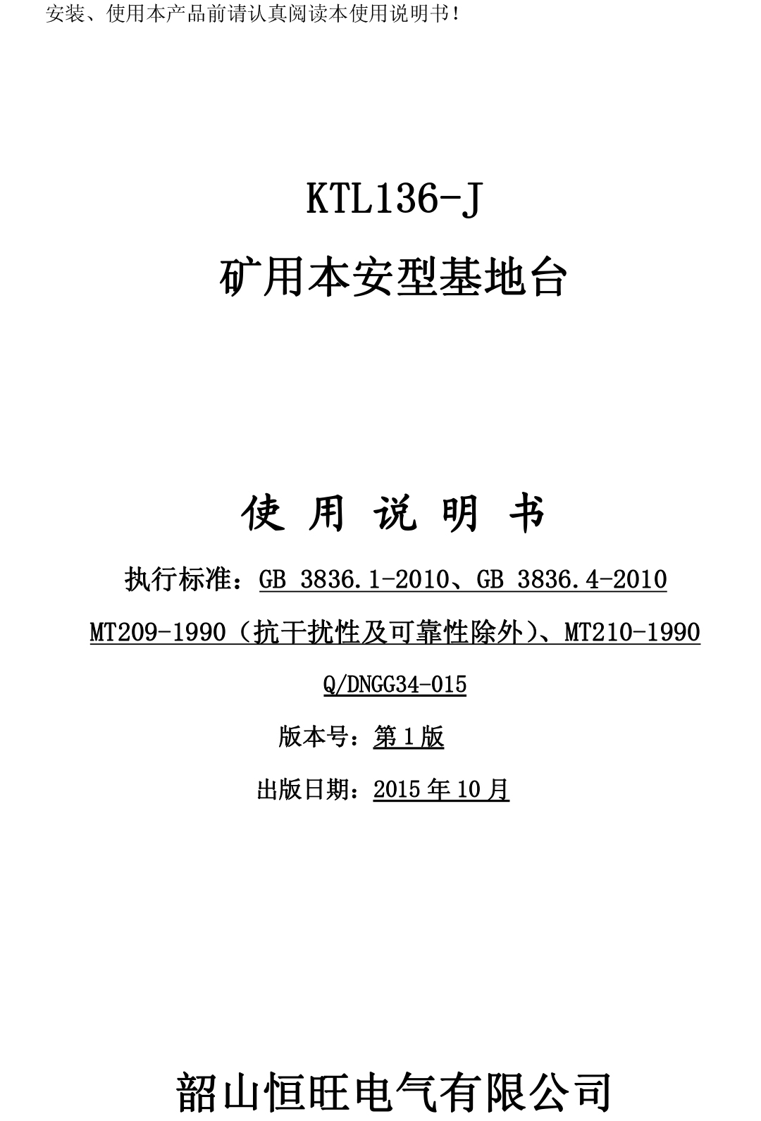 xiao12666@163.comKTL136-J礦用本安型基地臺說明書