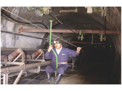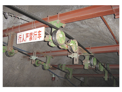 在架空乘人裝置運行的沿途中,全巷道內設置突發(fā)事件的緊急停車裝置,并分區(qū)段編號報警,以確保乘人安全。同時也可作為架空乘人裝置調試和檢修時的開停裝置。