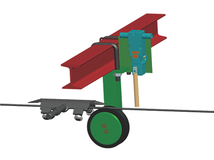 1、機身防脫繩保護沿線設置防脫繩擋板,防止鋼絲繩從托繩輪上脫落,同時設置脫繩保護裝置,鋼絲繩從托繩輪繩槽中脫離后,觸動保護開關動作,系統自動停車,同時有捕繩器將牽引鋼絲繩托住,使其不會繼續(xù)往下掉。