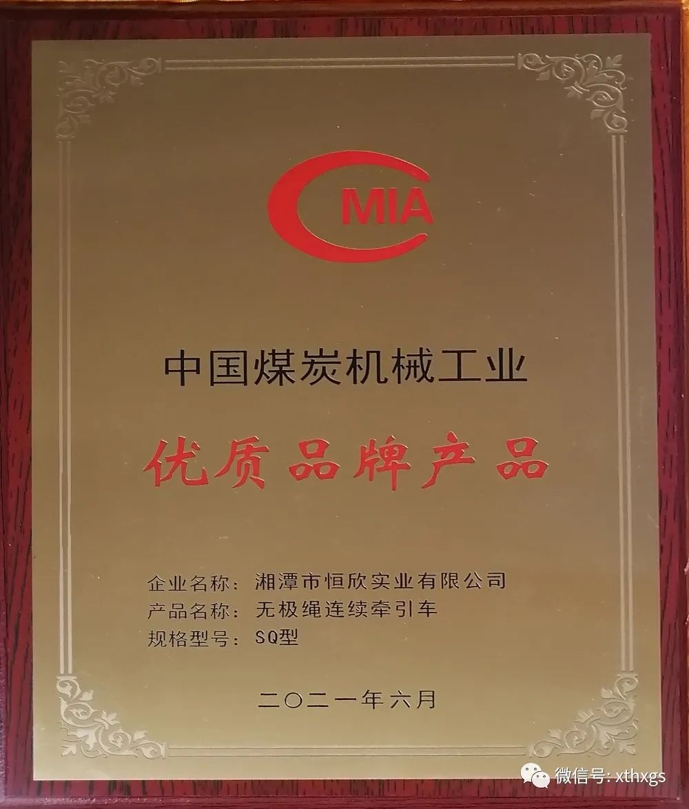 xiao12666@163.com【湘潭恒欣】“無(wú)極繩”產(chǎn)品榮獲中國(guó)煤炭機(jī)械工業(yè)優(yōu)質(zhì)品牌產(chǎn)品