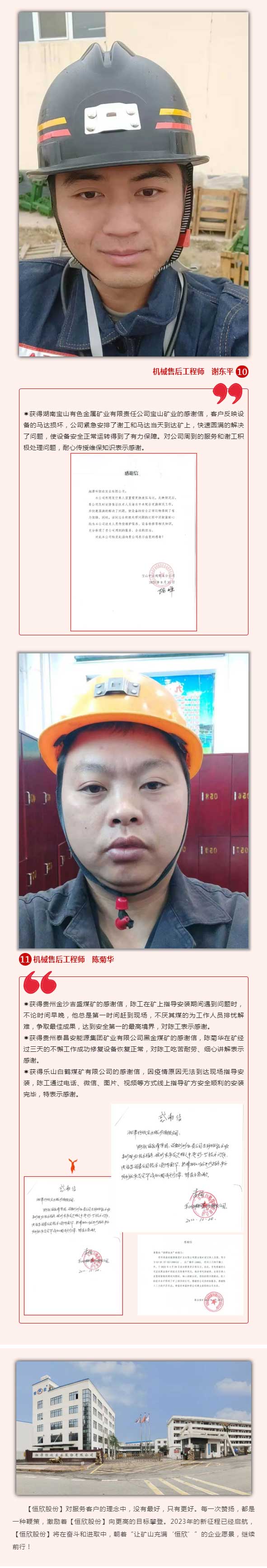現(xiàn)實(shí)的困難并未阻擋我們服務(wù)的熱情,我們始終把“客戶(hù)至上”的理念謹(jǐn)記于心篤之于行。當(dāng)我們收到來(lái)自全國(guó)各地客戶(hù)發(fā)來(lái)的表?yè)P(yáng)信和感謝信時(shí),我們售后團(tuán)隊(duì)中每一位成員都是喜悅和自豪的,辛勞的付出得到了客戶(hù)的肯定,一切都是值的。同時(shí)也非常感恩客戶(hù)對(duì)【恒欣股份】的認(rèn)可,讓我們有信心來(lái)年一定把服務(wù)做得更好。