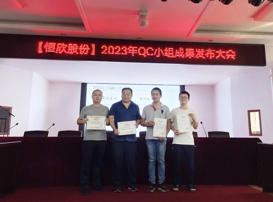 在啟動會議上,對榮獲“湖南省第四屆質量創(chuàng)新大賽二等獎”、“湖南省第44次QC小組成果二等獎”的QC小組進行了頒獎。質量總監(jiān)段杰圓對QC小組活動的成果進行總結,并指出公司質量文化建設和良好質量氛圍維護是長期持續(xù)的,希望通過開展“質量月”一系列活動,達到全員質量管理意識的提升,實現(xiàn)'將“恒欣股份”打造成國內外知名品牌'的質量目標。