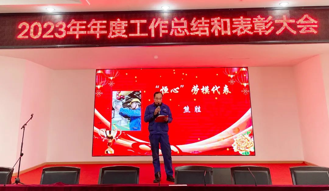 在表彰環(huán)節(jié),對(duì)2023年度的3個(gè)先進(jìn)班組和57名優(yōu)秀員工、標(biāo)兵和勞模分別進(jìn)行了表彰,感謝他們?cè)谶^(guò)去一年中勤勉工作、拼搏進(jìn)取,為公司實(shí)現(xiàn)銷(xiāo)售訂單、營(yíng)業(yè)收入、公司凈利潤(rùn)等經(jīng)營(yíng)指標(biāo)的大幅增長(zhǎng),起到了表率作用和大的貢獻(xiàn)!同時(shí),在表彰過(guò)程中,部分優(yōu)秀員工代表紛紛上臺(tái)感言,分享了各自敬業(yè)愛(ài)崗的工作情懷和職業(yè)操守,深深感恩【恒欣股份】給員工們打造的良好平臺(tái),不僅給400多名員工的就業(yè)機(jī)會(huì),而且讓全體員工的福利待遇年年增長(zhǎng)!并表示將會(huì)繼續(xù)發(fā)揮先進(jìn)表率作用,以更加飽滿(mǎn)的熱情投入到今后的工作中,為公司持續(xù)健康的高質(zhì)量發(fā)展作貢獻(xiàn)!