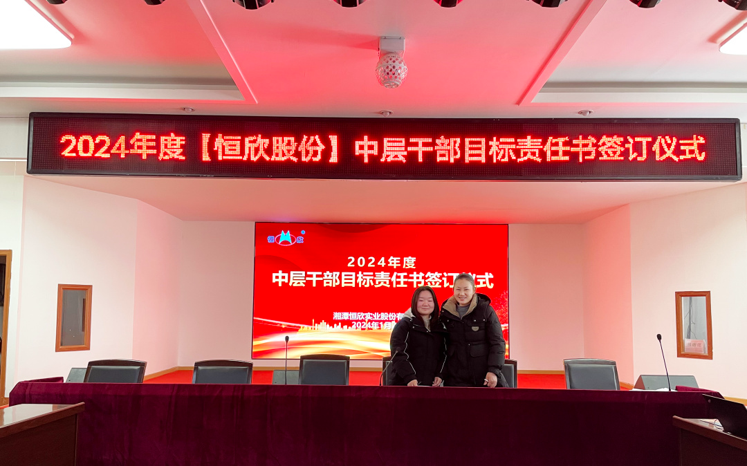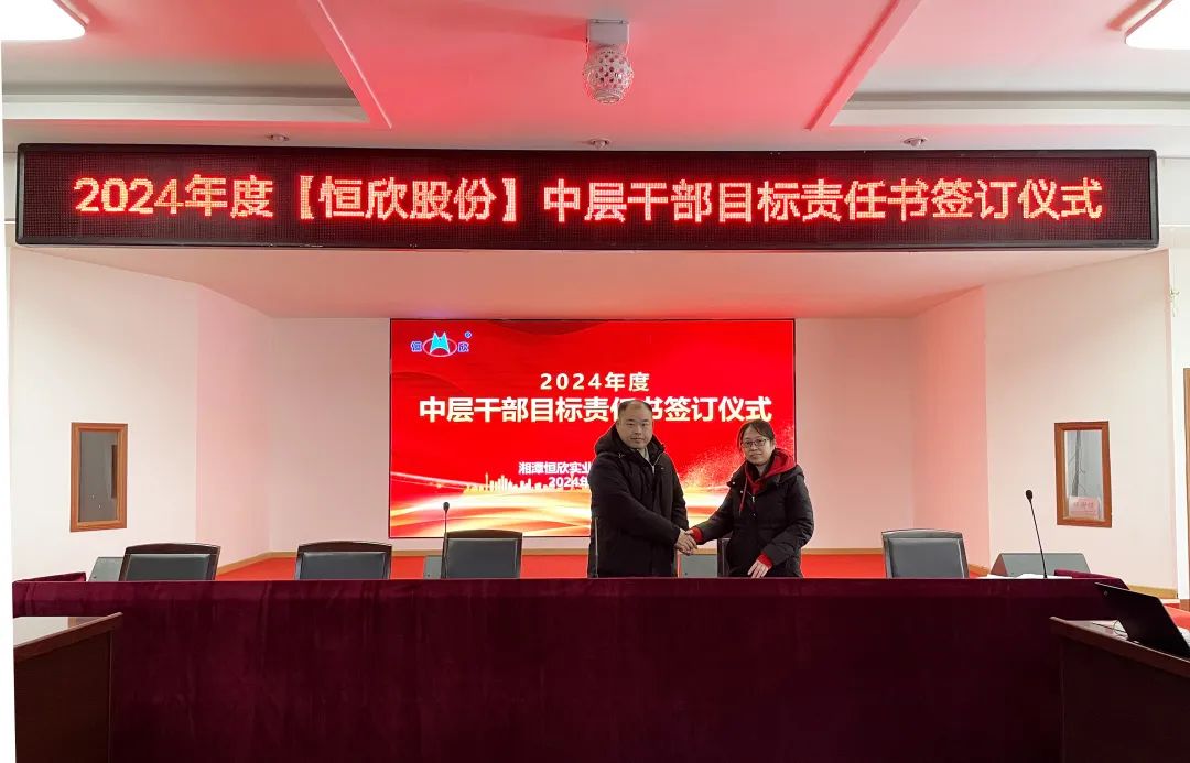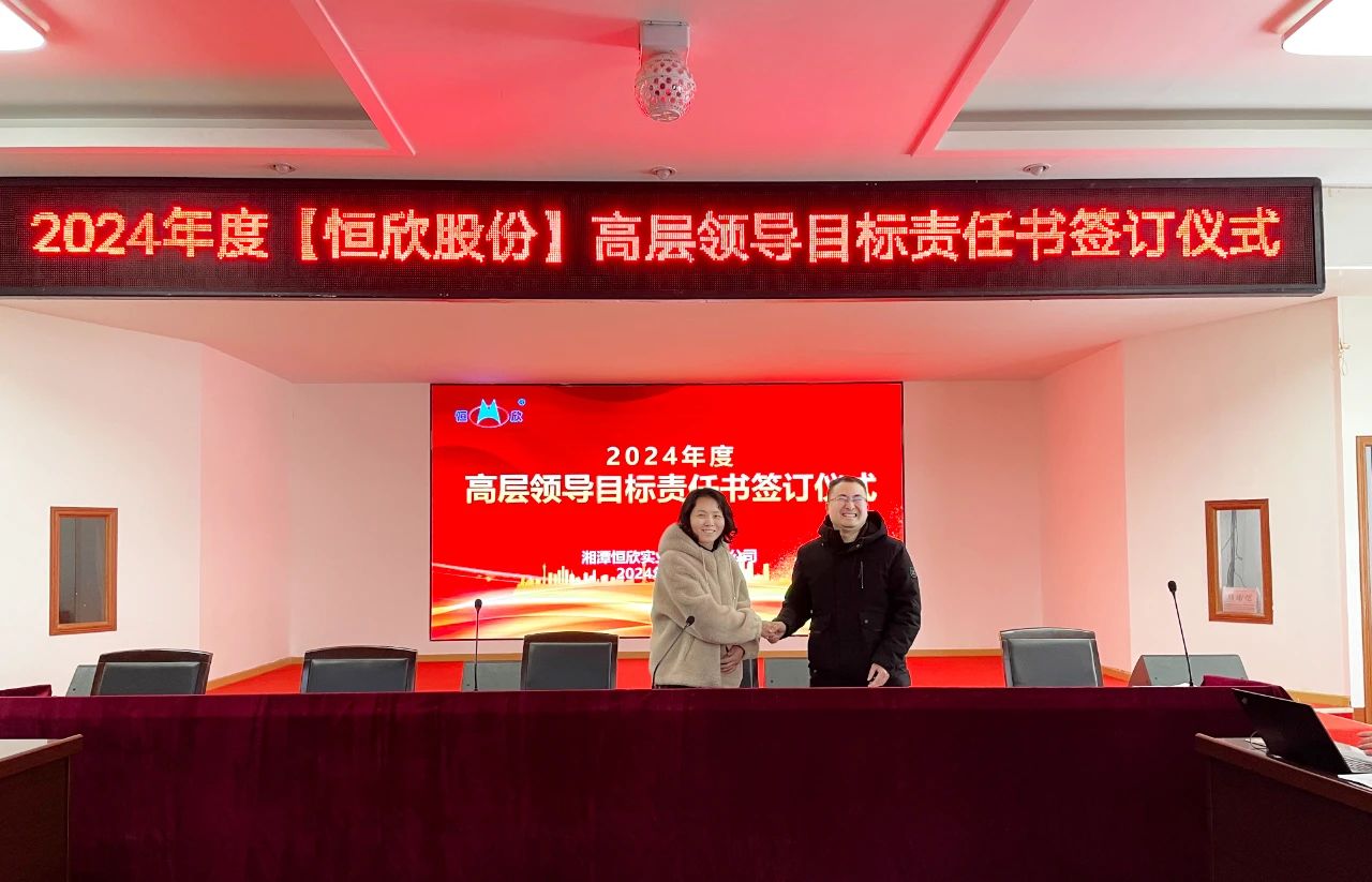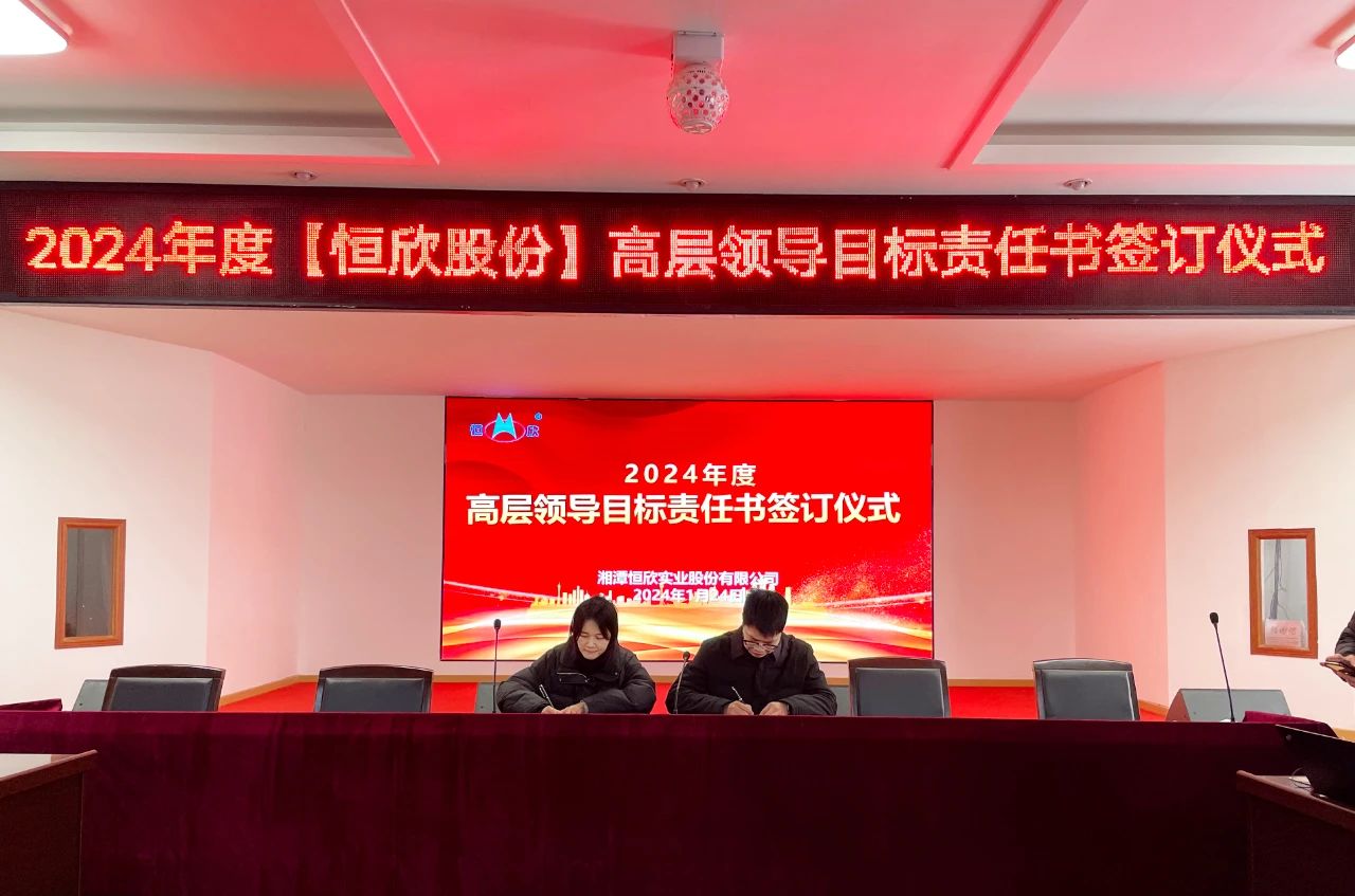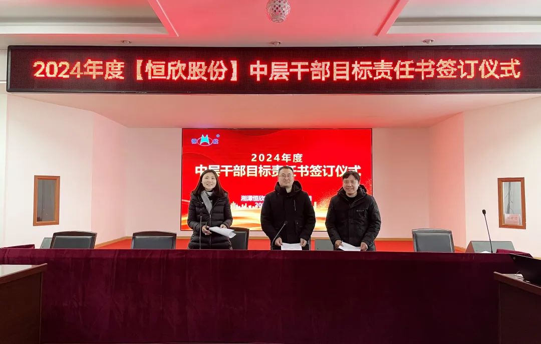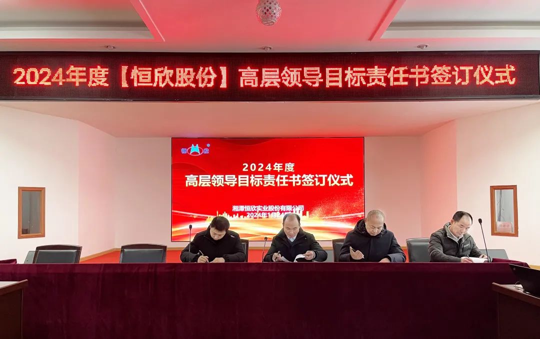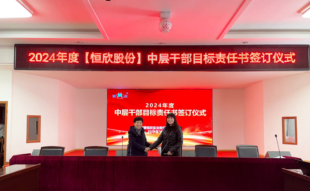 鳴鼓掛帥錨目標,滿弓勁發(fā)啟新程!1月24日下午,【恒欣股份】舉行2024年度目標責任書簽訂儀式。儀式由董事長肖公平主持,副董事長肖連平、總經理肖龍武和全體高層領導、中層干部參加了簽訂儀式。