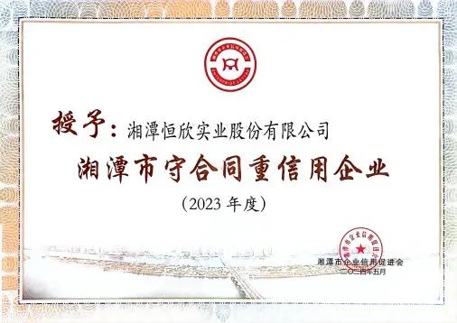 近期,【恒欣股份】先后被評為“2023年度湖南省守合同重信用企業(yè)”和“2023年度湘潭市守合同重信用企業(yè)”,【恒欣股份】已連續(xù)十一年獲得該榮譽,成為行業(yè)誠信經營的典范。