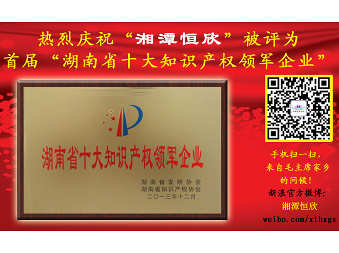 xiao12666@163.com熱烈慶祝“湘潭恒欣”被評(píng)為“首屆湖南省十大知識(shí)產(chǎn)權(quán)領(lǐng)軍企業(yè)”
