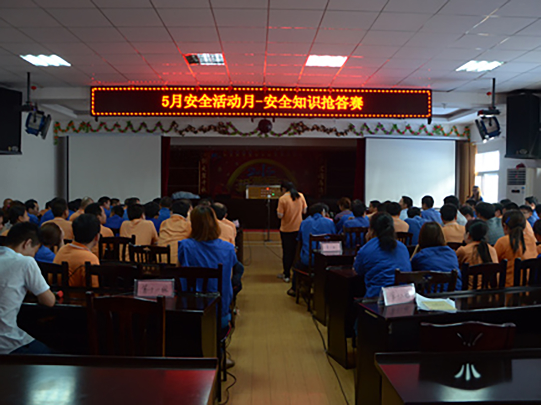 公司除開展5月專項安全生產(chǎn)月活動以外,在日常工作中時刻不忘“安全就是生命,生命就是一切”的安全理念,為此,除設(shè)備安全部負(fù)責(zé)公司安全生產(chǎn)管理以外,還成立了安全管理分會進行日常安全巡檢工作,并與各生產(chǎn)班組長簽訂了安全生產(chǎn)責(zé)任狀,每月組織員工進行安全生產(chǎn)培訓(xùn),并通過公司內(nèi)部廣播系統(tǒng)、月報、宣傳欄、QQ、微信平臺等方式進行安全生產(chǎn)知識宣傳,使安全生產(chǎn)意識深入每位員工心中。