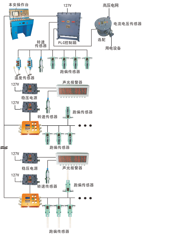2.2.2具有上(下)越位、急停禁啟、漏泄急停、張緊力下降、制動(dòng)器失效等開(kāi)關(guān)量報(bào)警功能。