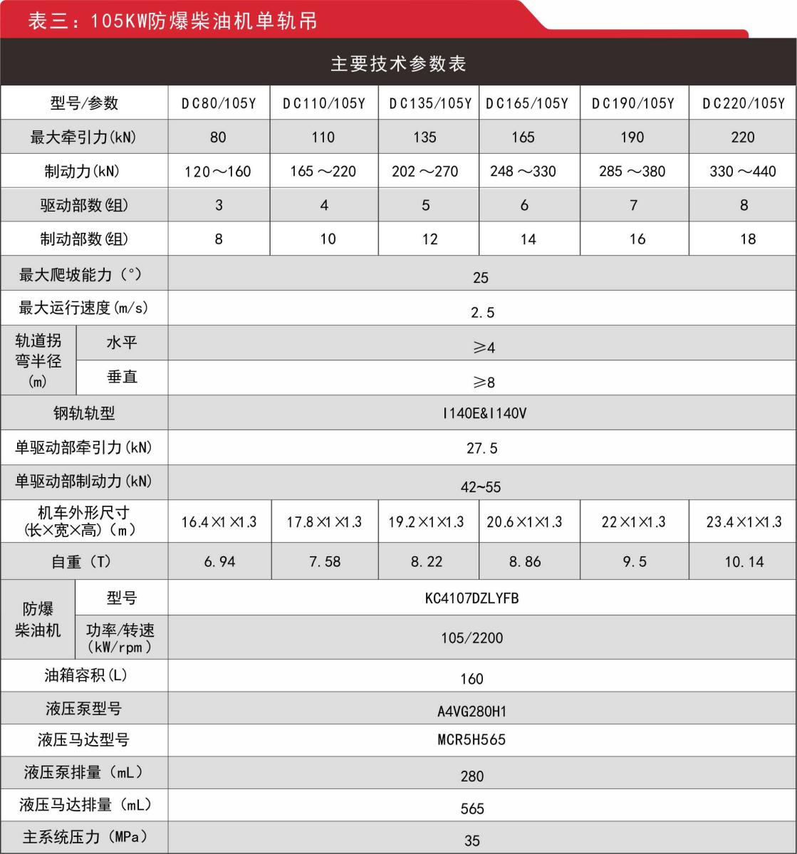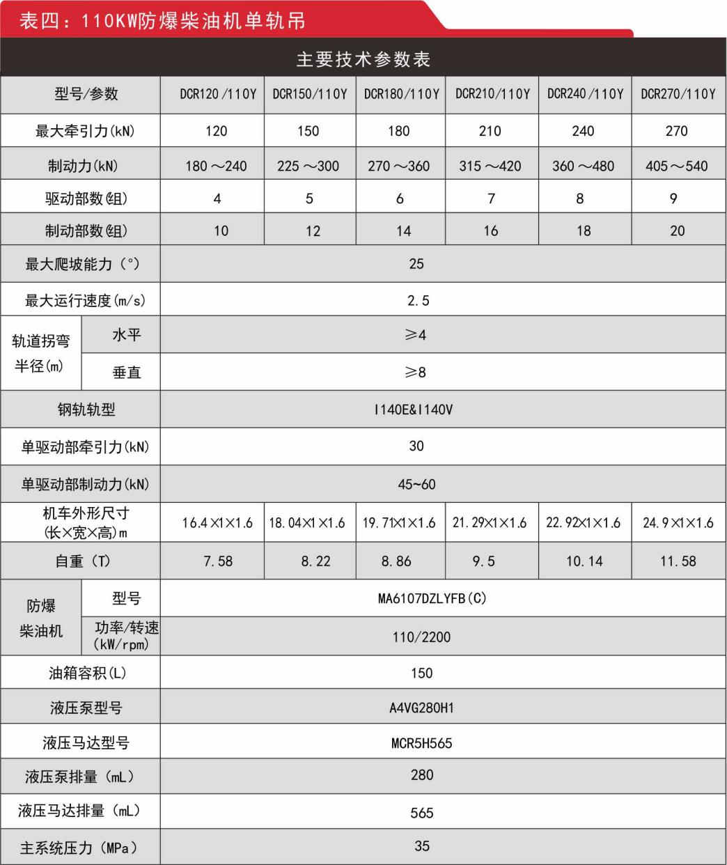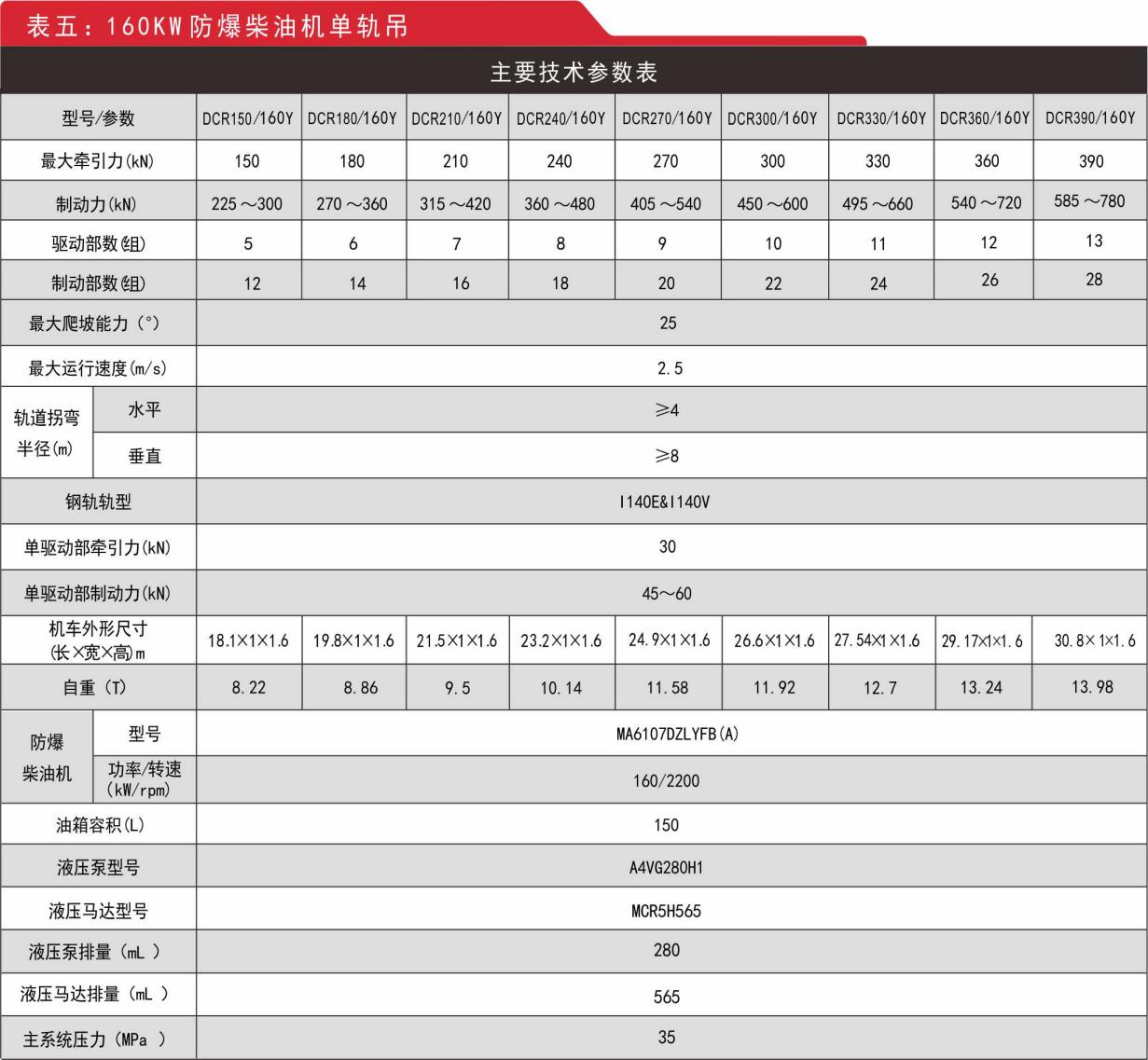 五、防爆柴油機(jī)單軌吊參數(shù)(全馬達(dá)/半馬達(dá)驅(qū)動(dòng)部)
