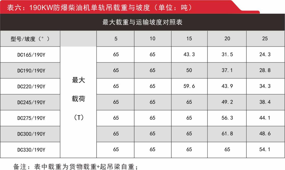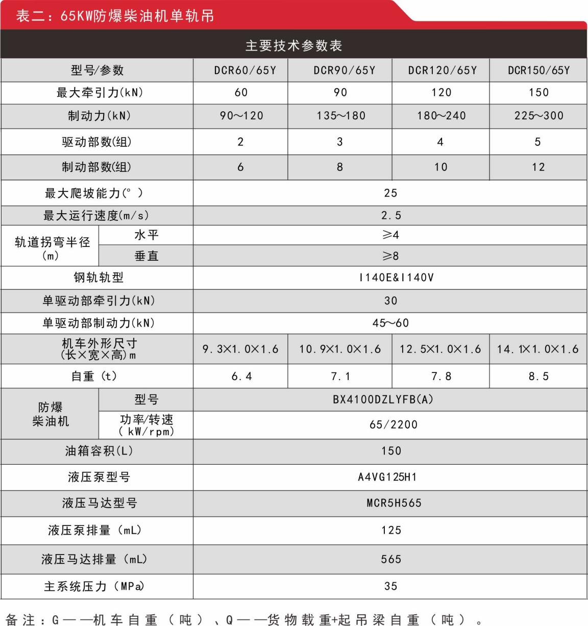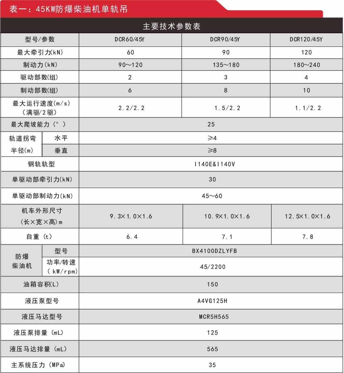 五、防爆柴油機(jī)單軌吊參數(shù)(全馬達(dá)/半馬達(dá)驅(qū)動(dòng)部)