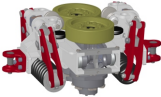 擺臂式半馬達(dá)驅(qū)動(dòng)裝置由液壓半馬達(dá) 、行走輪 、摩擦輪 、制動(dòng)裝置 、 左右擺臂 、 夾緊油缸等組成; 其采用擺臂支架結(jié)構(gòu) ,通過(guò) 中 間短軸連接摩擦輪 ,額定牽 引 力30KN ,設(shè)有工作制動(dòng)器和安全制動(dòng)器 ,制動(dòng)力都為45kN