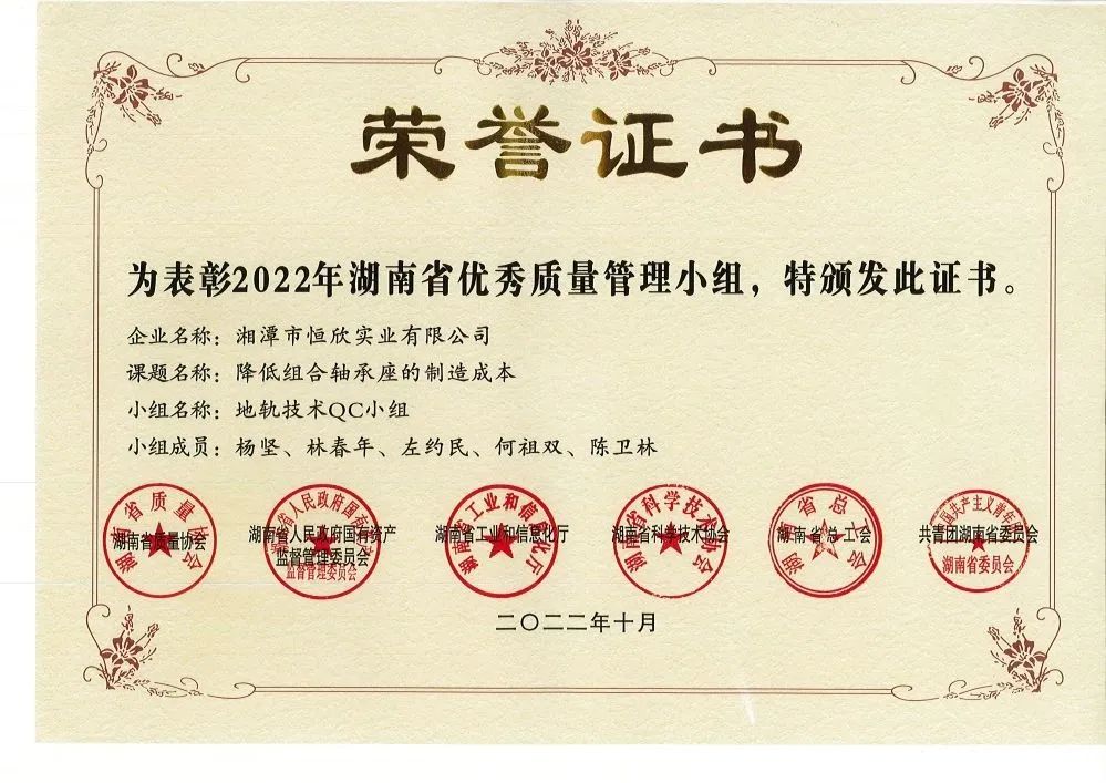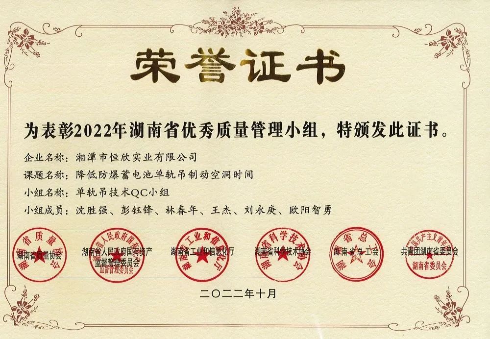 xiao12666@163.com獲評湖南省優(yōu)秀質(zhì)量管理小組