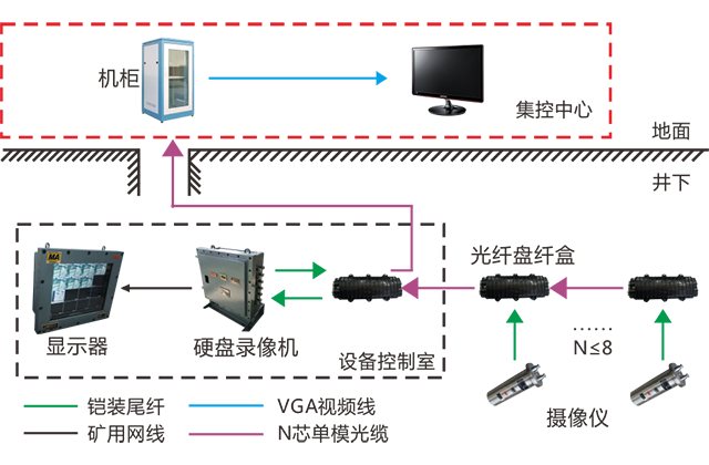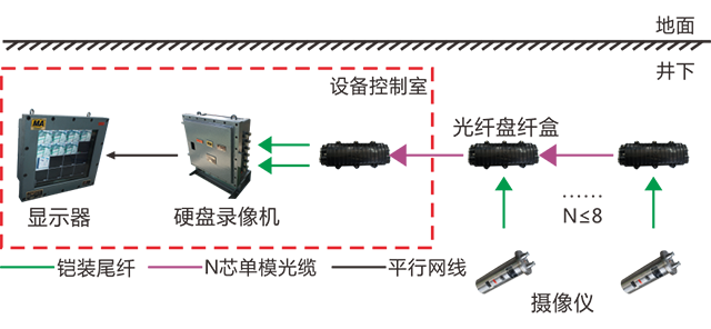 況進(jìn)行實(shí)時(shí)監(jiān)視,硬盤錄像機(jī)通過光纖接收視頻信號,通過顯示器進(jìn)行顯示和切換,實(shí)現(xiàn)地面和井下視頻信號實(shí)時(shí)顯示和存儲(chǔ)的目的。
