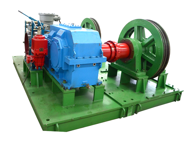 工作制動器、導(dǎo)繩裝置等組成,主要適用于大負(fù)載牽引力的使用工況。